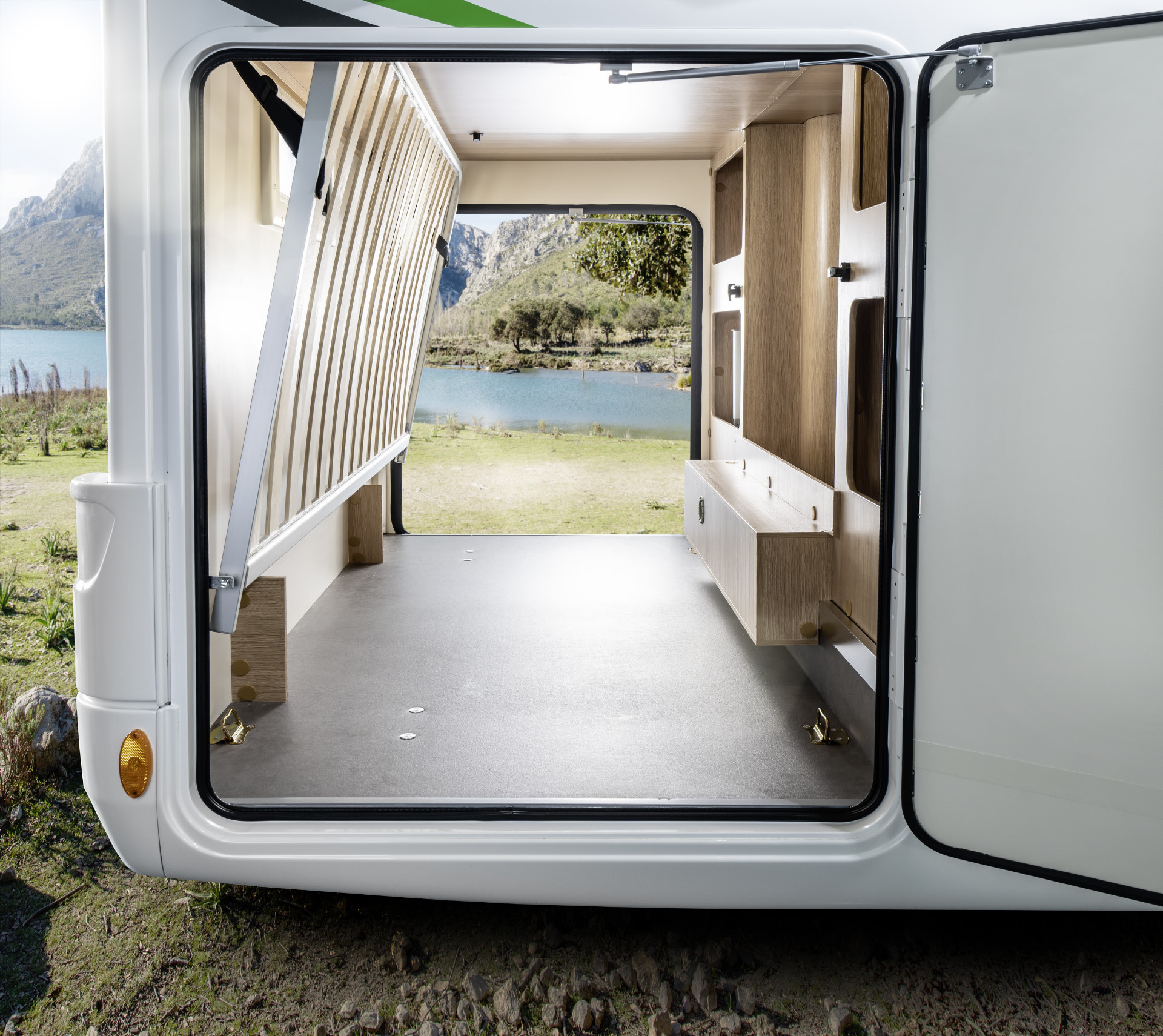 • Boden, Dach und Wände mit hagelgeschützter Oberfläche aus glasfaserverstärktem Kunststoff (GFK)