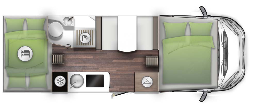 • Frischwassertank Volumen 110-118 (Wassermenge in Fahrstellung: 20l) Liter (grundrissabhängig)