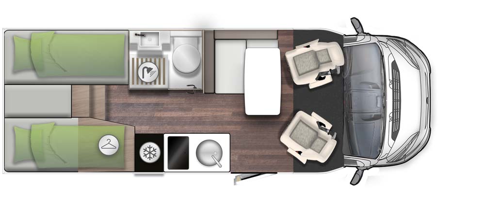 • Frischwassertank Volumen 110-118 (Wassermenge in Fahrstellung: 20l) Liter (grundrissabhängig)